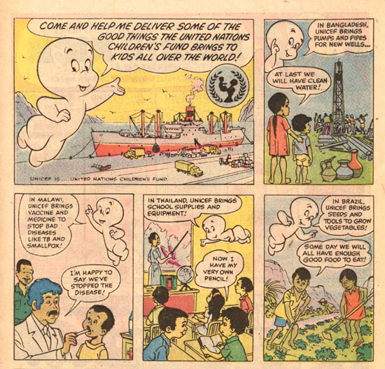 Harvey Comics led the pack in their devotion to devoting comic pages to ballyoo their charitable contributions and to deliver important public service announcements. Usually this meant badly halftoned photos of people in Casper costumes posing with frightened children or hillbilly clowns or lady vampires.