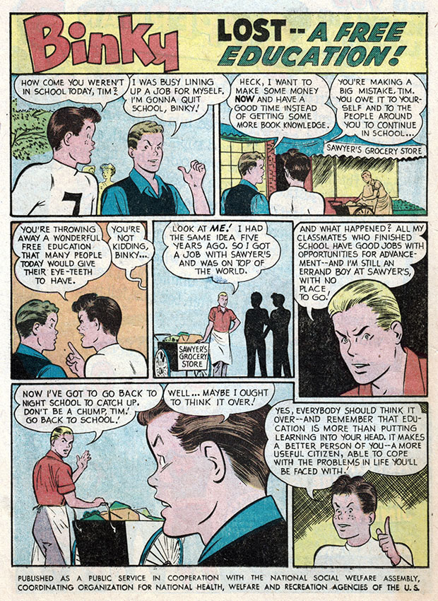 Listen to Binky kids, stay in school or you'll wind up delivering groceries! Yes if you study hard, get into a good college, and graduate with several degrees, today's wacky job market and the skyrocketing cost of student loans will almost guarantee you'll be working a second job just to make ends meet - an IRONIC second job delivering food for Uber Eats or Foodora! So stay in school.