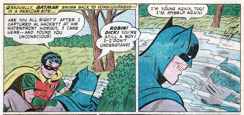 What's this? Batman sleeping for years like a veritable Rip Van Winkle? Giving us the basis for an exciting Batman story? But let's pause here for a special Public Service Announcement.
