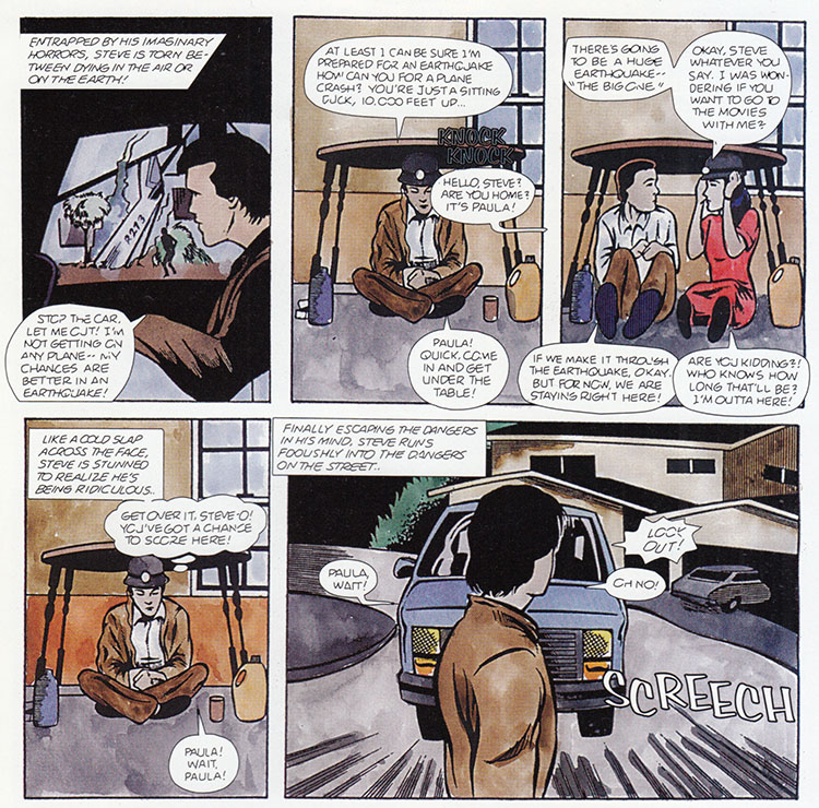 Demonstrate proper earthquake preparedness by finding a reinforced shelter, stockpiling food and water, and keeping a light source handy. Then throw it all away to go running out in the street to get killed by a minivan. It's all part of Steve's Danger Dodger Salute: Aware, Alert, Killed By A Minivan.