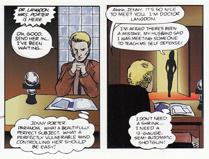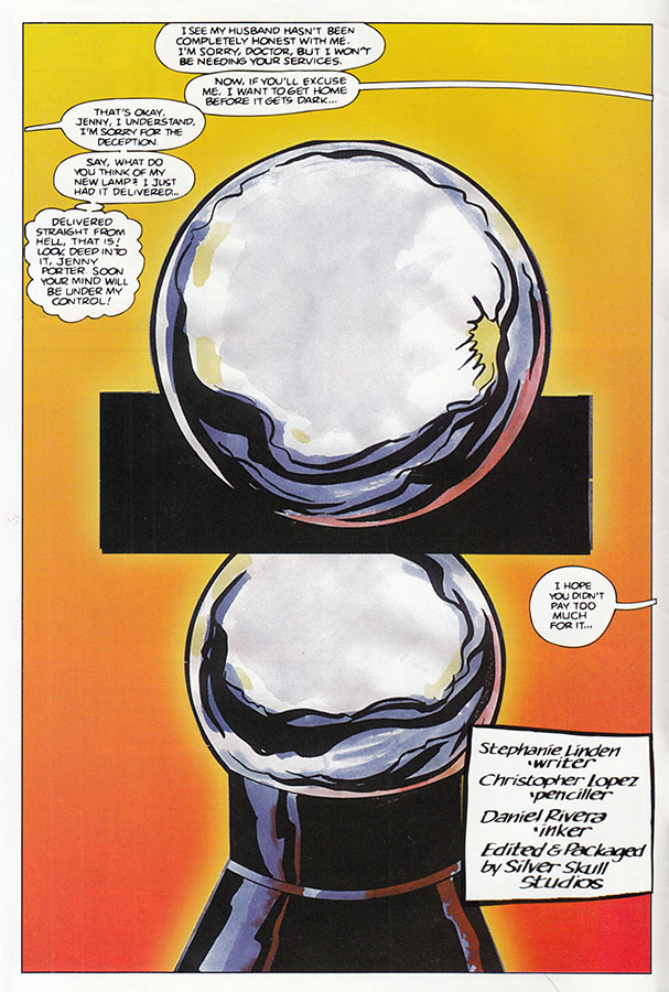 WHAT it turns out Jenny Porter was running this Scary Lamp experiment all along and everything we just saw - er, read - was all Langdon's lamp-induced nightmare! What a twist ending, certainly worthy of a forgotten direct-to-video thriller, which this definitely was a comic book adaptation of!