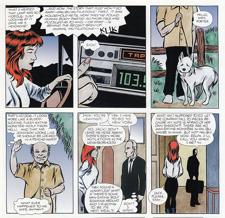 Paranoid, repressed, and prone to exaggerate the monster wolf tendencies of neighborhood dogs, Jenny Porter definitely needs some care and attention! Oh well, see you later honey, I'm off to Miami. That cocaine isn't going to traffic itself!