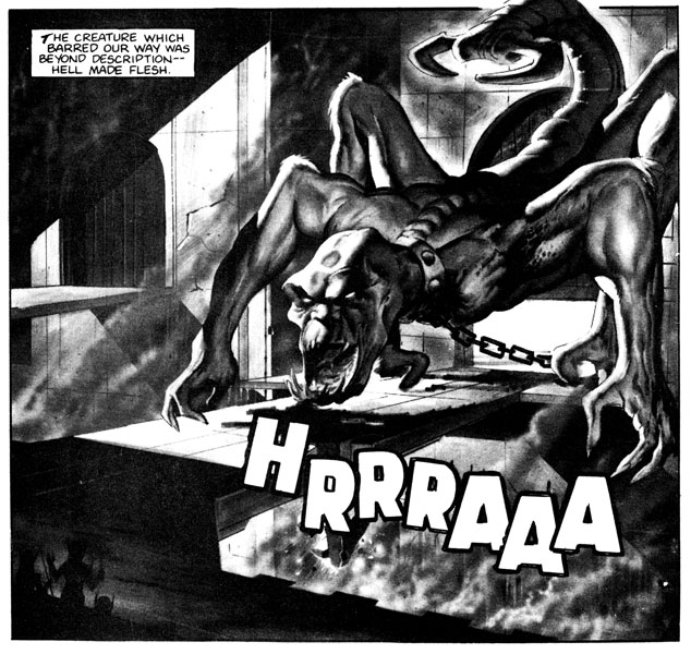 I know I had 2 pages of exposition at the beginning of this but I forgot one! OOPSY. He's the dark, tormented, brooding half-human all the ladies would just swoon over, if there were any ladies around at all. I wonder if he wears one shoe on these raids, in honour of his half human side?