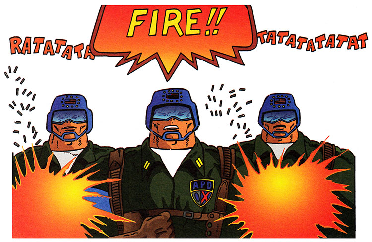 The important part about leading paramilitary one-world antichrist police forces is to be right out there in front of your men, you want to be two or three paces in front of them when they start firing automatic weapons. It's really the safest place.