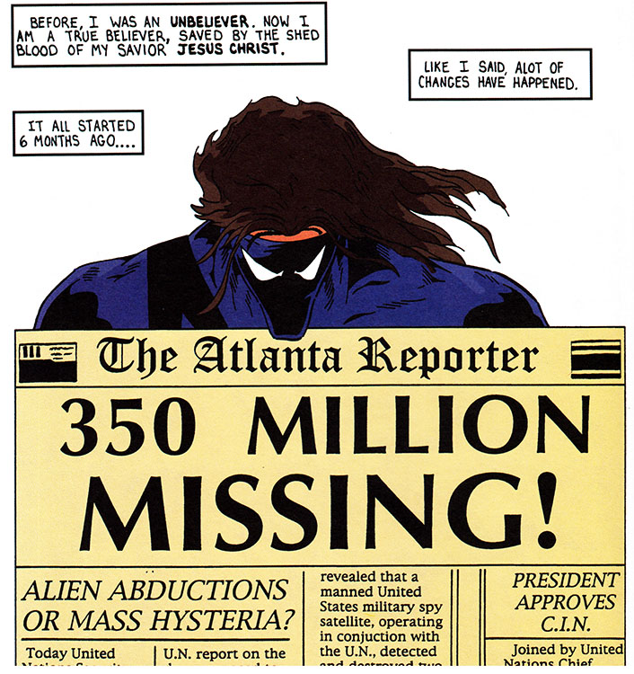 Many fan-fictional works have been devoted to this exciting time when the one-world supercomputer-equipped forces of the Antichrist roam the land forcing everyone to take the mark of the Beast. And today we find out that even in a post-Rapture world, masked superheroes still fight for truth, justice, and extremely specific brands of prophetic Christianity!