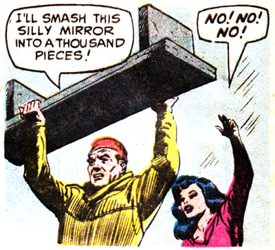 BAH! LARRY SMASH STUPID MIRROR! LARRY HATE MIRROR FOR SOME REASON