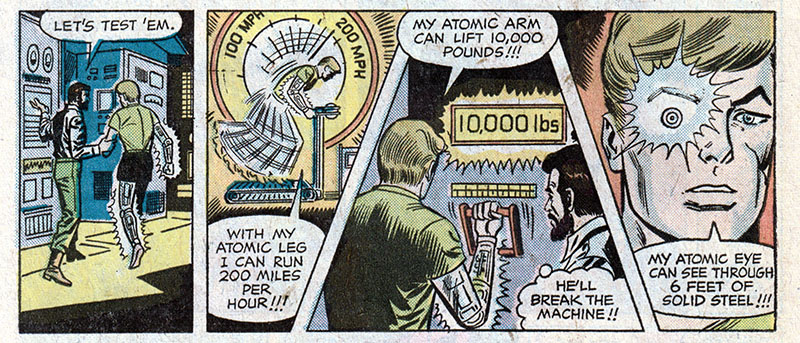 You can run 200 miles an hour with just one atomic leg? What's that other leg doing, just dragging along there in the dust?