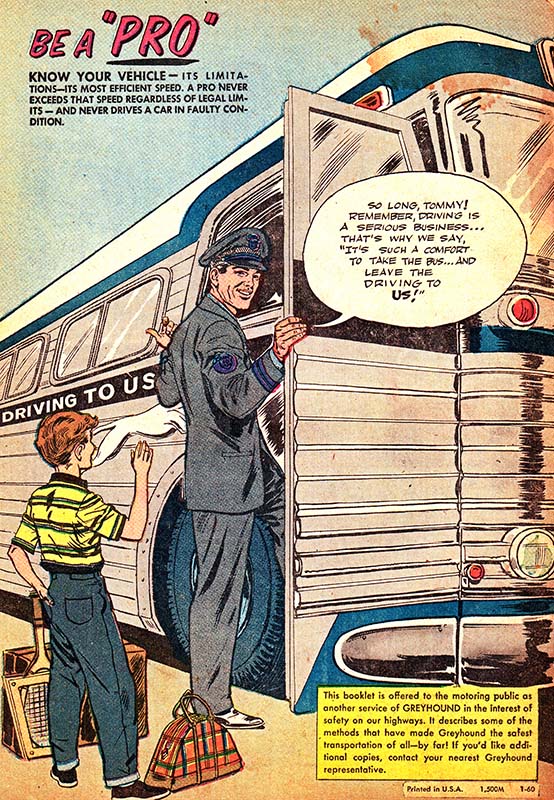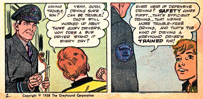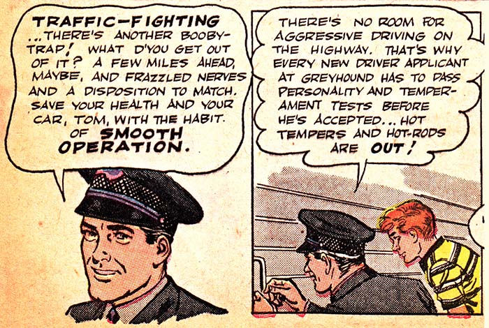 The menace of the automobile has been with us for more than a century now, and while we constantly tell each other that drivers are getting worse all the time, the fact is they've always been bad. Why, they were so terrible in the '50s that bus companies published entire comic books devoted to reminding everyone how terrible these amateur auto jockeys were.