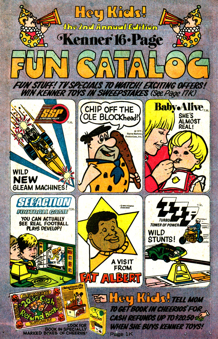 Anyway, since time immemorial, people have attempted to keep their children sane in the darkest time of the year by giving them fun toys to distract them, and since time immemorial plus one day, toy manufacturers have been hard-selling their wares to the parents, by way of enticing the children with toy ads and catalogs. "What's a catalog" you ask, because you are apparently a baby yourself? Well, it's kind of like Amazon dot com, but on paper and with a lot less Chinese dropshippers. Such as tonight's little number, a Kenner catalog featuring all the most exciting toys in their 1973 lineup!