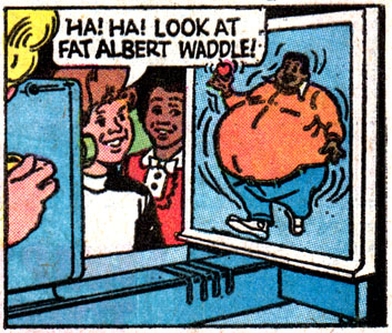 This enticing cornucopia of fun new toys that crash and eat and and club is just waiting for you to wave in front of your parents every day, morning, noon and night, until they relent and give you... A Visit from Fat Albert? Uh-oh, keep an eye on your drink, Mom!