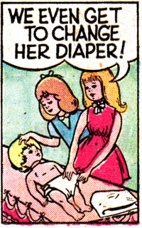 Someone get this second little girl to the emergency room, she is having a psychotic breakdown watching her friend play with her dolly. An admittedly creepy dolly but still. Get a grip on yourself sis.