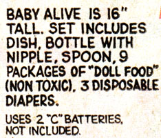 "Doll" "Food" (Non toxic) (Don't even consider suing us, parents)