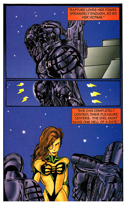 Rapture's amazing power is that as a sexy lady, she can give men pleasure, which must be pretty amazing on dates. Imagine going on a date with a lady that involved pleasure! If only such a thing actually existed.