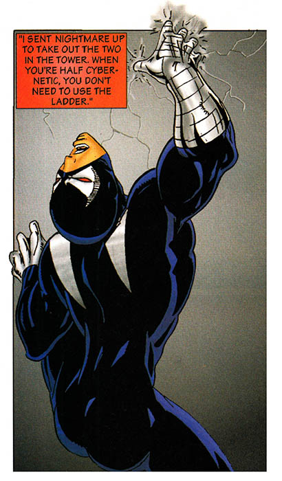 This emotional scene of ripping up the Core-Tech flag might have carried some emotional weight if the comic had bothered to show us the Core-Tech flag at any point earlier in the narrative. Now it's just vandalism, which is a kind of anarchy, I guess?