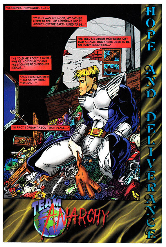 As it turns out the one thing this guy saved from his ruined house was an issue of Team Anarchy, the very comic book that our narrator was himself starring in! So that's convenient.