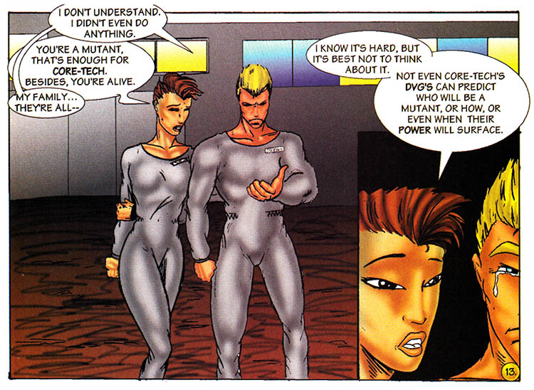 You're a mutant. That's enough for Core-Tech, and it's enough for anyone wanting to make comic books in the 1990s, you don't have to know anything about genetics or evolution or how faces are put together. Just put the word "mutant" into your story and you're good to go.