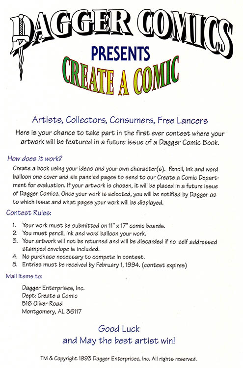 Advertise with Dagger and reach an audience that likely will never actually get this far into any comic book Dagger ever publishes! On the other hand, anyone really entertained by this material is probably an easy mark for whatever it is you're selling. So there's that.