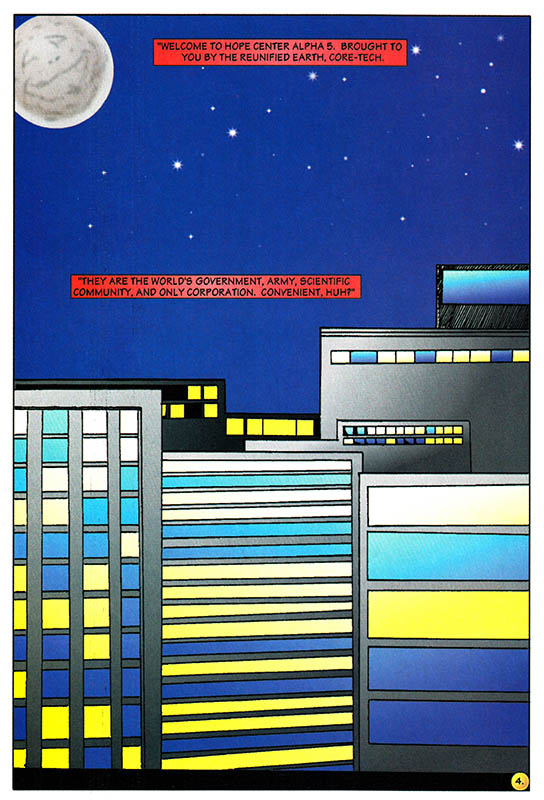 Let's move! Move from the mountains and meadows to the downtown urban tower blocks, I guess that's what Hope Center Alpha 5 is all about, all the amenities of the big city yet close to nature! Or maybe the artist is just forgetting where this story takes place. Anarchy!!