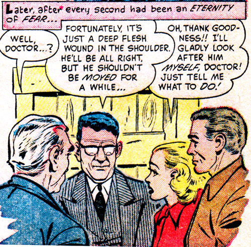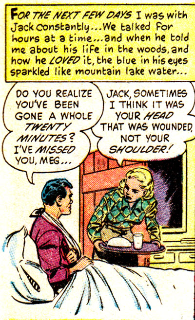 Since they don't have hospitals on islands in the sky, Meg assauges her guilt by offering to take care of her victim, which the doctor is oddly OK with given that she's all ready tried to kill him once.