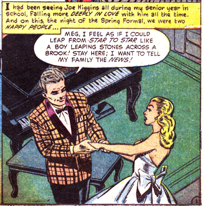 First let's begin at the suprisingly genteel and well-dressed beginning, where spring has sprung and the spring formal has leaked out. Is it her senior year in college? High school? It hardly matters, because back then teenagers were basically adults anyway.