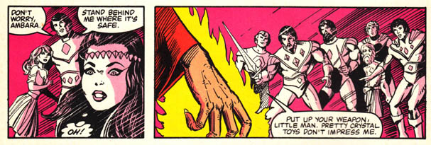Yes sir, we are only HALF WAY through this exciting tale of crystal warriors and their crystal vehicles and accessories. This is FANTASY, remember, fantasy in the mighty Marvel manner! Which apparently means "taking its sweet time". Tune in next week, same crystal time, same crystal URL, as we bring you part two of THE SAGA OF CRYSTAR THE CRYSTAL WARRIOR!!!