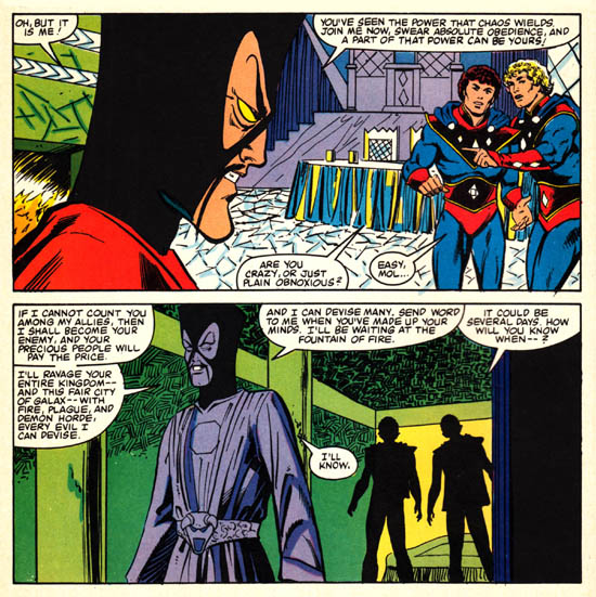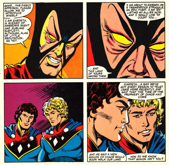 And hey, guess what. He IS evil. Refreshing to see some good honest evil for once. We wouldn't want any intrigue or trickery to gum up the works of our elaborate, sophisticated HIGH FANTASY here, you know.