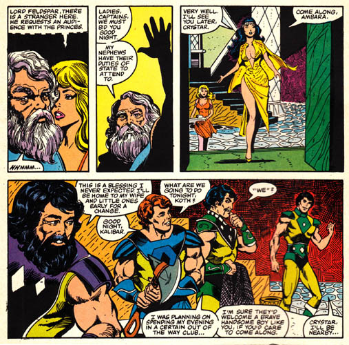 Looks like there's important royal business to be taken care of, so all of Crystar's friends can leave now. Beardo gets to go home and see his kids, and moustache man is going to an "out of the way club" that welcomes "handsome boys". Hey, I don't write this stuff, I'm just putting it out there.